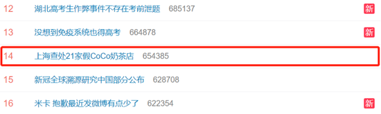 “上海查处21家假CoCo奶茶店”上热搜 网友:假奶茶店一抓一大把