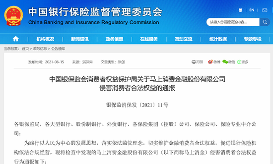 原标题:侵害消费者合法权益 马上消费金融被“点名”