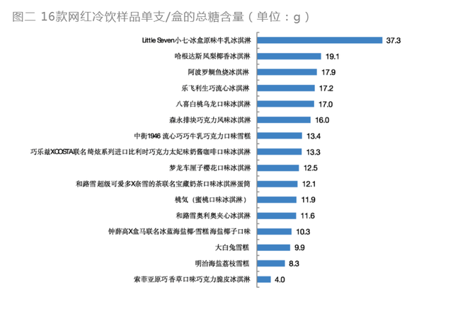 上海市消保委近日对16款网红冰淇淋、雪糕进行了比较实验,结果显示,由于配方和工艺的差别,不同类型样品的蛋白质和脂肪含量差异很大,反式脂肪酸和钠含量不算高,但食用大盒冷饮易导致糖摄入过量,其中12款冷饮所含热量需要慢跑3-5公里才能消耗掉。