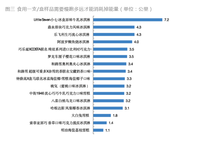 上海市消保委表示,如果按照慢跑1公里能消化60Kcal(1Kcal相当于4.184KJ)计算,这16款样品每食用一支/盒,需要慢跑1.1-7.2公里才能消耗掉,其中12款样品需要慢跑3-5公里才能消耗掉。