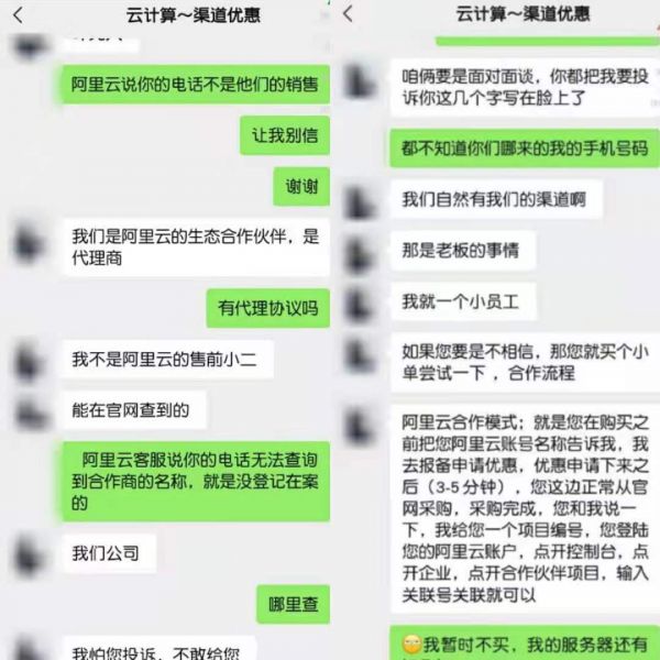 之后在阿里云平台进行了投诉,阿里云客服给的回应是,无法查到号码是阿里云第三方公司的,因此无法办理,用户需要提供号码的对应公司,证明这是阿里第三方服务公司。李明花了两天时间,查到此前170号码对应的公司,李明表示可以看到该公司向运营商出具了和阿里云的合作协议。李明再向阿里云客服反馈,阿里云回访电话说,第三方公司拒绝透露从什么渠道获取用户信息,因此阿里云无法处理,“阿里云客服还说这就是最终结果,就算我再申诉都没用”。