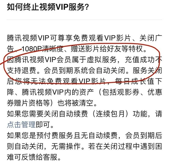 这部分人群其实不多。因为会员有效期通常是一年,除了那些开通连续包月、包年的用户,其他人到期后都要重新购买,此时就得再勾选同意一个新协议。而平台往往试图通过协议来获得自己假装有其实并没有的权利。比如规定平台有权随时调整会员权益,一经发布即刻生效,用户一旦继续使用就视为“已经仔细阅读并接受更新后的VIP特权”。用户不接受也没得选——协议规定,VIP会员不支持退费。变更有理,退款无门,摆明吃定了消费者。