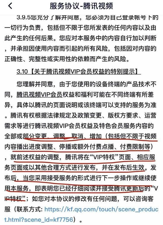 这份熟悉的配方不只出现在视频平台,不少互联网企业的电子协议里都有此类单方面利好企业的条款。有的连会员续期都等不了,干脆后台直接更新条款,以协议形式暗自缩水服务。消费者只能在推送通知里点击同意,不知情的情况下,权益就受损了。