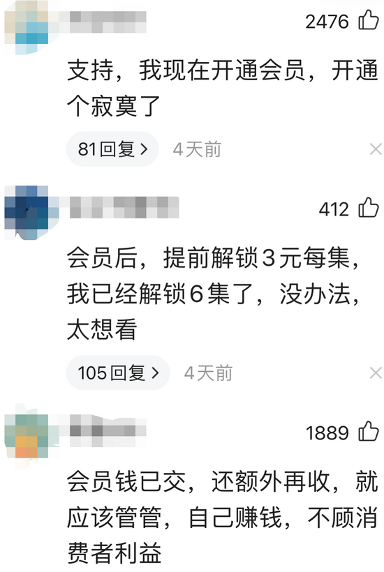 对有的会员来说,热播剧《扫黑风暴》8月31日已经大结局了;对有的会员来说,才更新到第24集。区别在于,是否愿意在会员费之外,再付出每集3元的超前点播费。消费者吐槽自己的会员“提前看”权益买了个寂寞,上海市消保委也于近日发声,认为腾讯视频漠视消费者选择权,再度将“超前点播”推上风口浪尖。
