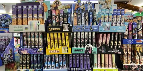 从文具盲盒市场来看,晨光文具都已经开始与IP做联名,拉动线下九木杂物社销量,增加文创独家价值。市售销量较大的几款IP联名文具盲盒,多是出自晨光旗下。但名创优品却在开店、亏算的模式中,越走越远。