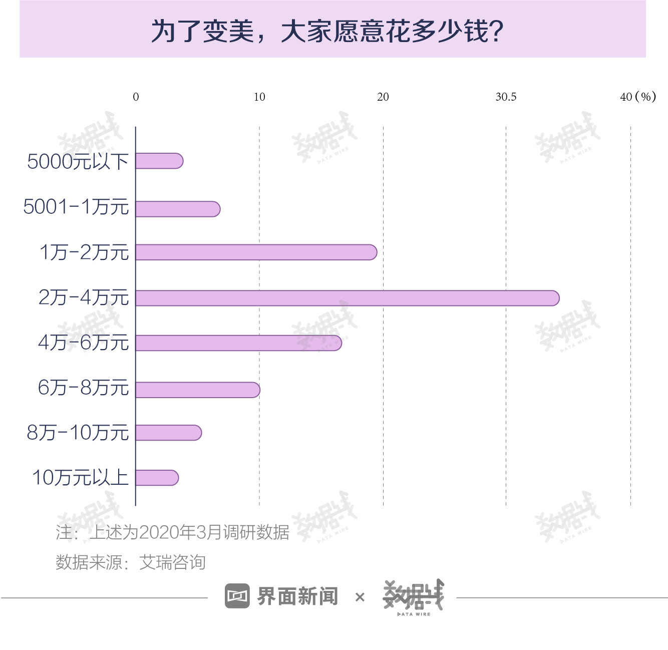 大多数人的医美开销在2万元到4万元之间。舍得花10万元“变美”的人还是少数。