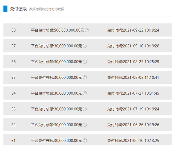 官网最新数据显示,目前平台已实施五十八次兑付安排,此前平台已实施五十七次兑付安排,合计已兑付约26.74亿元。为平稳安排兑付,拟于9月22日(周三)10:00进行第五十八次兑付,兑付金额为3000万元,本次兑付将按先本金后收益兑付方案,先行兑付本金。本次兑付后已累计兑付27亿万元,剩余待兑付156.7691亿元。
