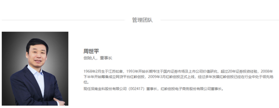 红岭创投官网显示,周世平1968年2月生于江苏如皋,1993年开始长期专注于国内证券市场及上市公司价值研究,超过20年证券投资经验,2008年下半年开始筹备成立网贷平台红岭创投。