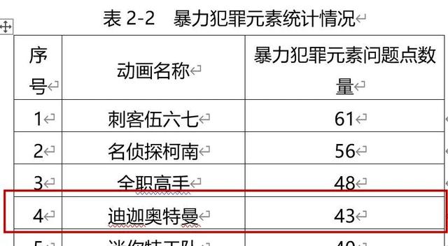 这份《报告》指出,此次调查的动画片里有近一半均不同程度存在暴力犯罪元素,点名《迪迦奥特曼》除奥特曼日常打怪兽情节外,还涉及到持械殴打、多人恐吓、纵火爆炸等暴力情节,暴力犯罪元素和阴暗黑化元素均为43个。