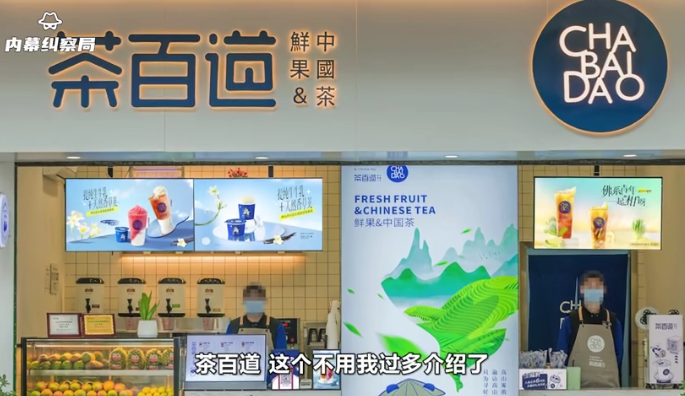 博主“内幕纠察局”称茶百道过期原材料更换标签继续使用,宣传鲜果制作但部分产品用果浆替代。该博主自称暗访了不同城市的4家茶百道店铺,都存在过期材料更换标签使用的情况,并且店员声称是为了防止工商检查。