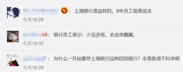 “从接电话的到保安到职员全都是一副你欠他的样子,知道的是他们来上班,不知道还以为上坟的,说话也没有任何礼貌可言。我虽然不是什么顶级富豪,但也在这家银行放了几千万元,近一年流水接近4亿。”该大V表示,基于这家银行的态度,只能选择把钱全取走放别的银行。