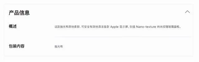 据苹果官网显示,抛光布由非研磨性材料制成,可用于清洁任何苹果显示器,包括纳米纹理玻璃,在抛光布右下角还印有苹果的LOGO。