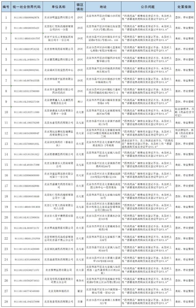 原标题:北京昌平通报28家药店防疫措施未落实,两家被吊销经营许可证