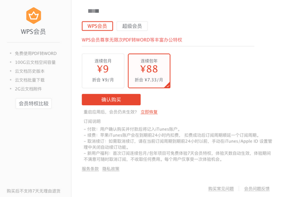 李先生购买的会员产品正是属于这一类别,开通“WPS会员”能够享受80余项功能特权。