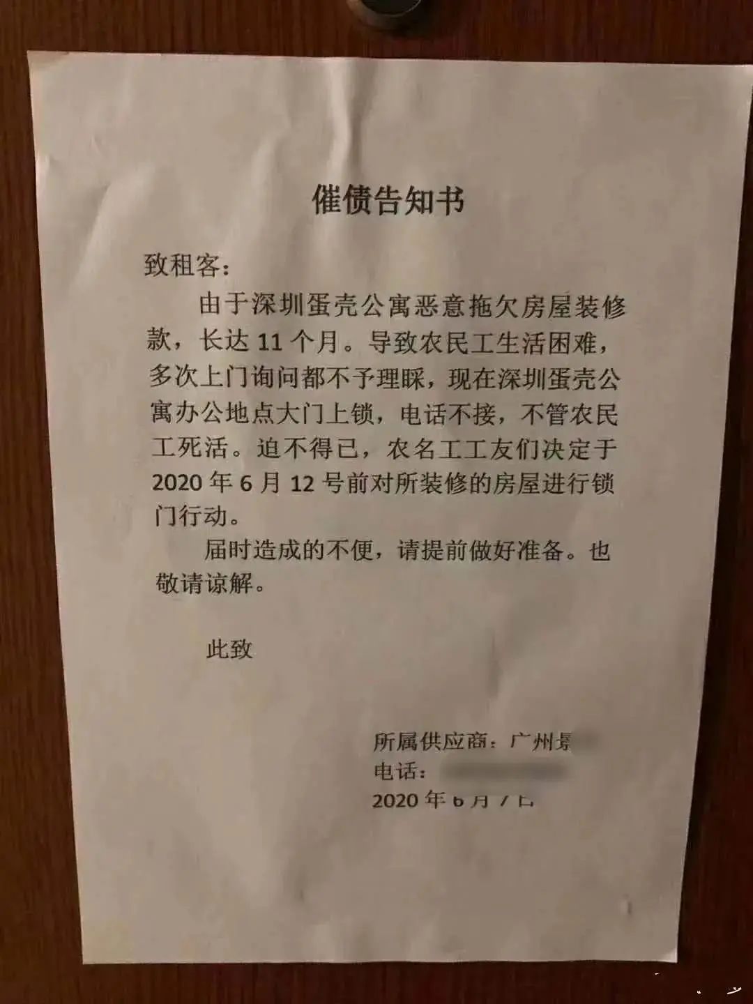 蛋壳公寓供应商催债