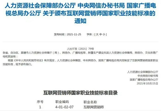 近日,人社部、中央网信办、国家广播电视总局共同发布了互联网营销师国家职业技能标准。