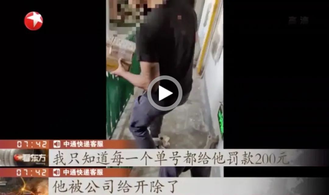 中通快递客服:“我只知道每一个单号都给他罚款200元,他被公司给开除了,我们外派的比较多,没有正规培训好。”