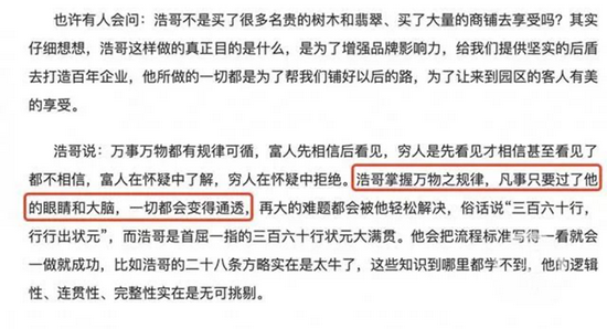 很难想象,这家看似普通的店铺,能诱导70岁的老人3年在消费235万……更离谱的是,文峰总裁秘书的一篇吹捧文章,将总裁陈浩比作“卧龙凤雏”、掌握万事万物规律的一代“神人”……