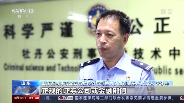 山东省菏泽市公安局牡丹分局刑侦大队反诈骗中队负责人 宋永华:不要相信所谓的稳赚不赔,低成本高回报的宣传,都是陷阱。投资理财一定要去正规的证劵公司,或金融部门,千万不要把自己的钱款,放进不明的APP进行投资。