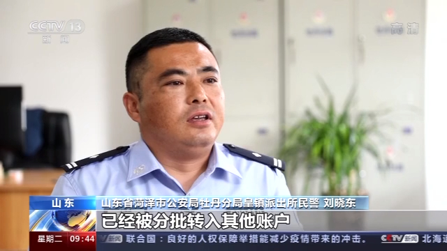山东省菏泽市公安局牡丹分局皇镇派出所民警 刘晓东:发现张先生转入的这笔钱,已经被分批转入其他账户,无法再进行冻结。