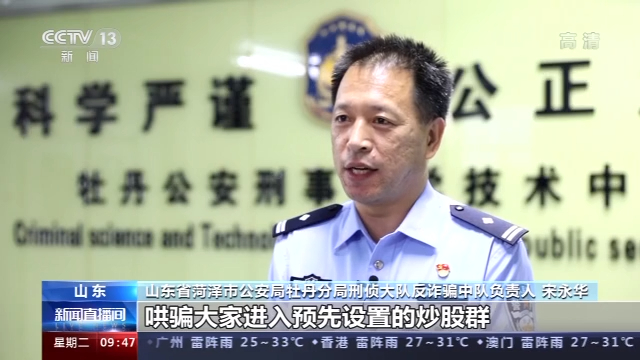 山东省菏泽市公安局牡丹分局刑侦大队反诈骗中队负责人 宋永华:诈骗分子抓住个别人急于求财的心理,通过电话,微信等通讯手段,哄骗大家进入预先设置的炒股群,虚拟货币投资群,然后冒充炒股专家、导师,鼓励诱导大家投资,并模仿虚构一个炒股、期货的高盈利场景,吸引人们进入他们虚拟的APP进行投资,落入他们设置好的圈套。