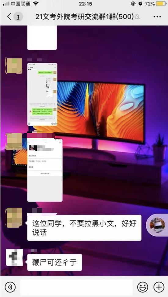 同时,张铭多次发现,文考网的工作人员把给出负面评价考生的微信账号和聊天内容,在微信群等地方公布出来。在他看来,对文考网有负面评价的考生或会遭到“网暴”。