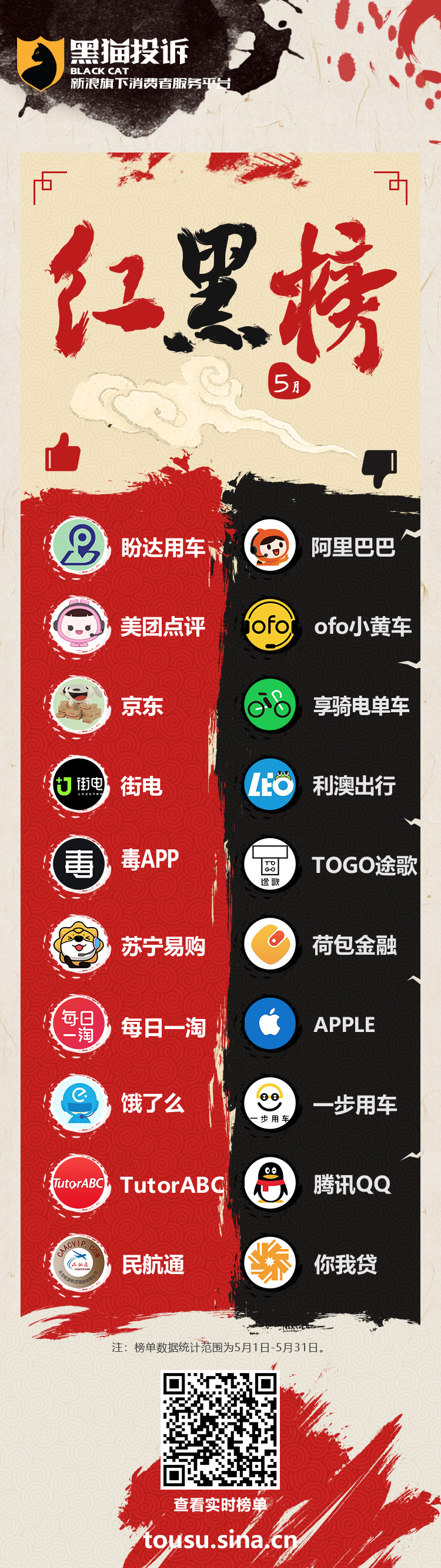 5月黑猫投诉企业红黑榜:阿里居黑榜榜首