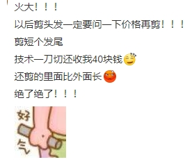 让人emo的,除了价格,还有飘忽不定难以预判的服务质量。有网友说,“真的好想剪头发,但现在家这边剪头价格直接翻倍,而且技术水平还无法确定,我实在不敢轻举妄动”。