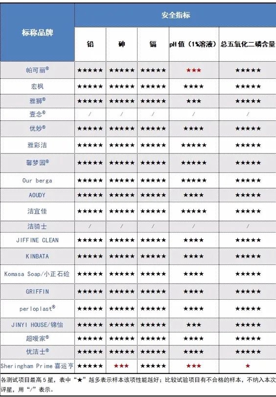 20款样本中,来自澳大利亚的Sheringham Prime喜运亨的总五氧化二磷含量为1.9%,超过《衣料用液体洗涤剂》(QB/T 1224—2012)中总五氧化二磷含量的要求(≦1.1%,对无磷产品的要求),使用时可能对人体和环境产生危害。由于该样本标签标识没有标注其执行的产品标准,加之依据标准为企业标准而非国家强制性标准,因此本次比较试验并未判定该项目是否合格。
