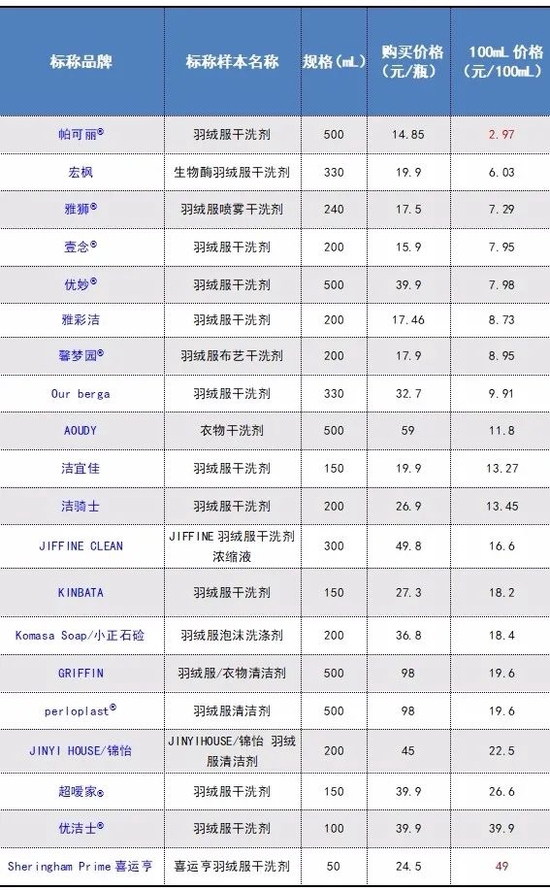 20款免洗羽绒服清洗剂测评!“壹念”“洁骑士”未达标
