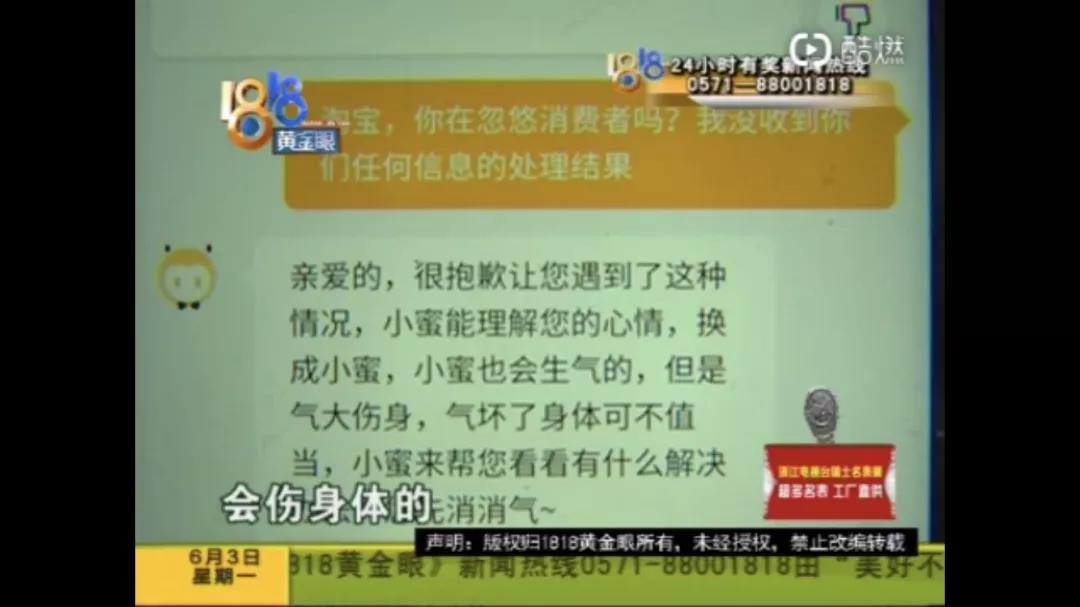 随后,程女士多次向淘宝客服投诉,客服也一直是安慰程女士不要生气,没有明确表态。程女士表示,不能如此纵容该商家,上当的不止她一人。