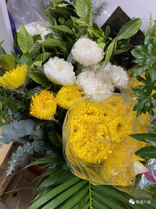 除了价格上涨,小八了解到,清明鲜花的选材范围正渐渐扩大。除了传统的黄白菊花、乒乓菊、洋甘菊等,最近也有顾客选择白百合、白洋牡丹、满天星等黄白色系的鲜花,以及勿忘我、向日葵等具有怀念寓意的鲜花。一些花店在制作吊唁花束时更加注重艺术性,还会搭配蓝色、紫色系花材表现深沉感。
