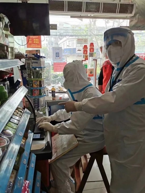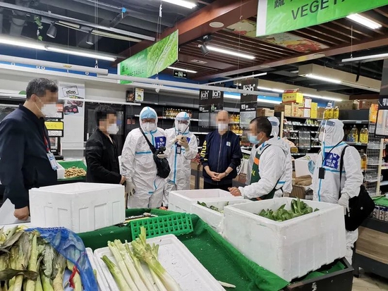 接到举报,金山区市场监管局对某社区蔬菜禽肉团购发起人金山区李旦食品店进行调查。
