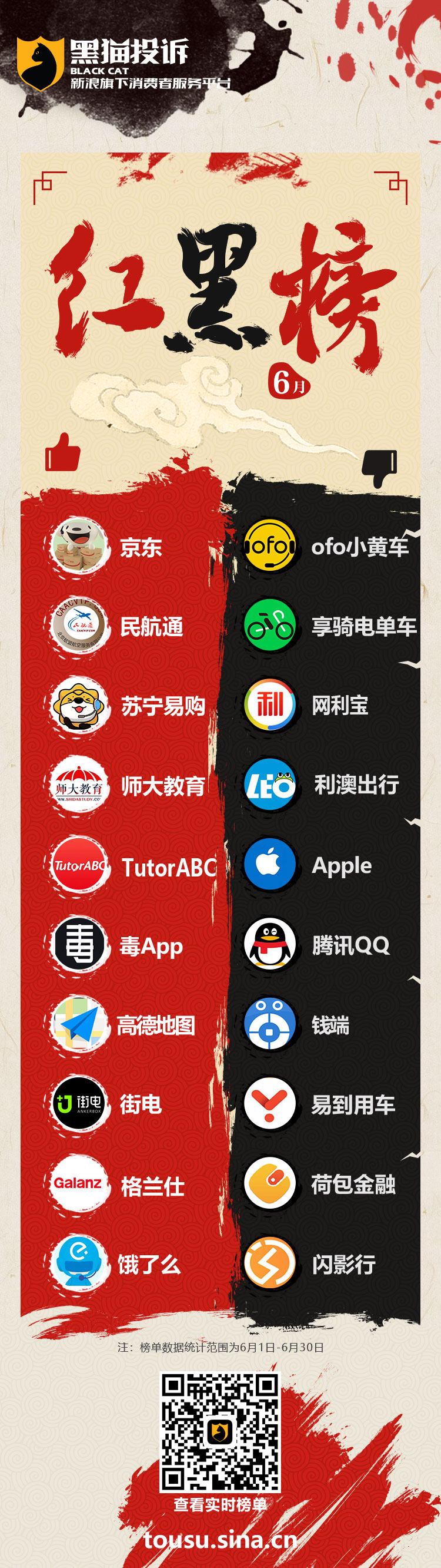 6月黑猫投诉企业红黑榜:钱端及网利宝逾期上黑榜