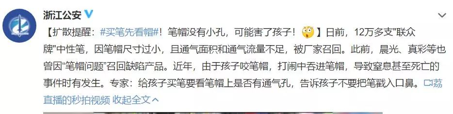 当心!中性笔笔帽可能造成儿童窒息!赶紧看看