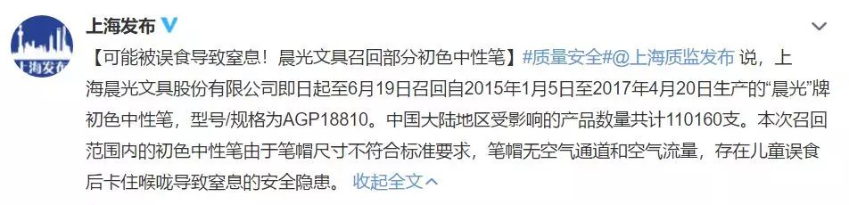 上海万帮文具有限公司敬请购买过该产品的消费者立即停止使用,企业将根据消费者意愿,为消费者提供换货(更换符合标准的笔帽)或退货服务。