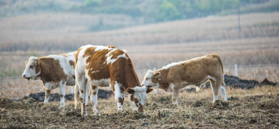 沈阳的饲养场里,悠闲吃草的奶牛