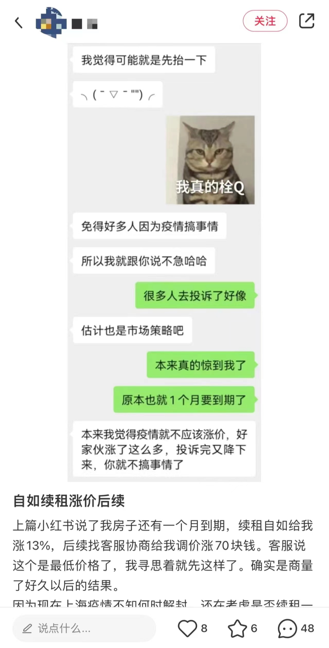 记者在某社交平台搜索关键词“租房涨价”发现,和徐辉有类似经历的网友并不在少数,涨价幅度也是从几十元到几百元不等,不只是在北京,连续封控超过两个月的上海也有不少案例。有的和管家经过协商后还是续约了,而有的则是表示不能接受涨价幅度选择了退租。