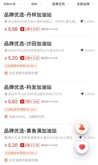 懂懂笔记在手机上下载了好几款被不少司机推崇的第三方加油APP,发现应用首页所推荐的加油站基本上都是民营加油站,只有零星几家是地处偏僻位置的中石化、中石油直营站点。而且加油站位置越偏僻,价格的优惠力度就越大。