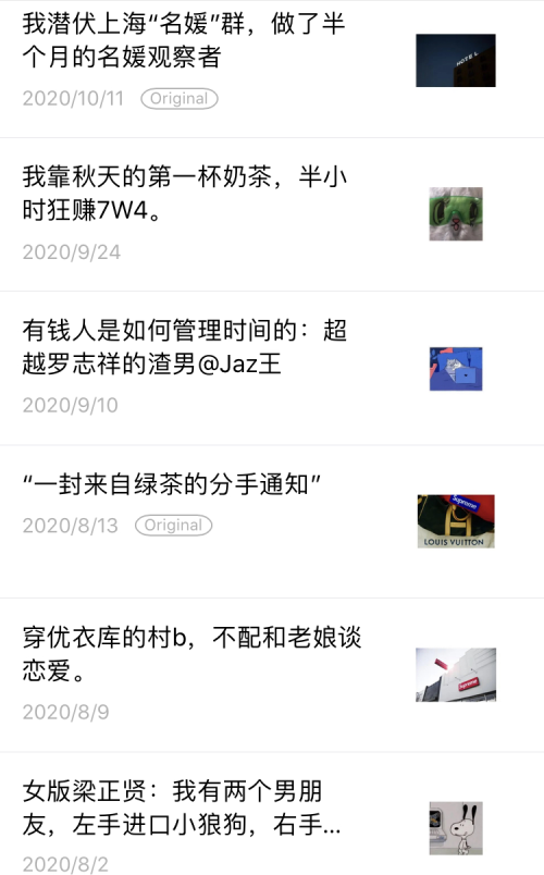 还有细心的网友发现,该公众号的其他文章从标题看均与“名媛观察记”异曲同工:不是在煽动性别对立、贫富对比,就是在模仿“拜金”女的口吻。