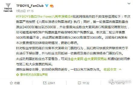 目前,大麦网做出回应,称此次共67258人获得购票资格,25000张票品3分34秒售罄,均为通过粉丝特权验证完成的购票。