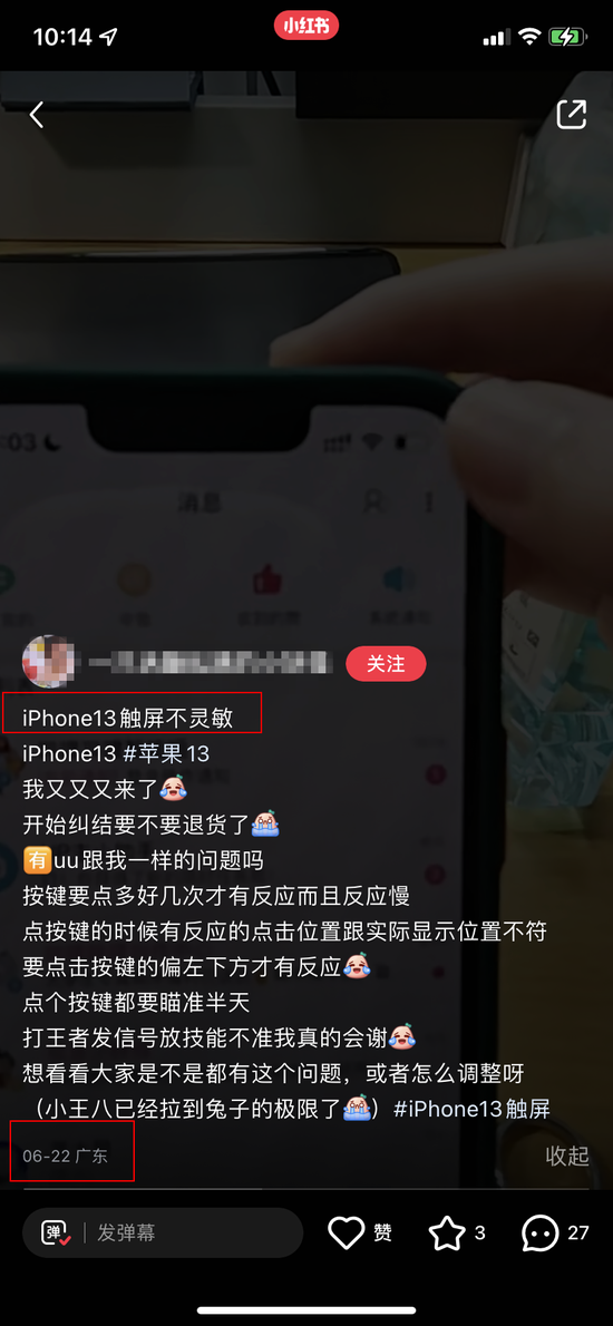 《消费者报道》在小红书平台检索发现,近期,确有不少用户曾反映过618促销期间购买的iPhone 13存在屏幕触碰无响应问题。
