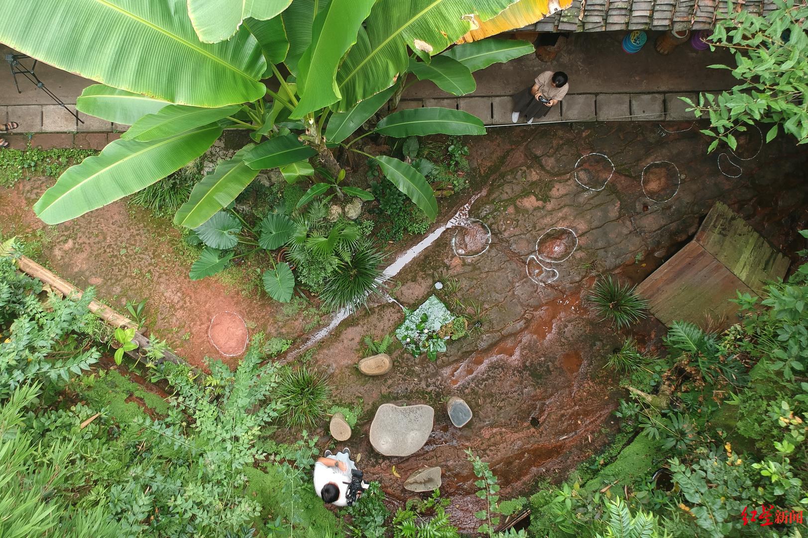 朱女士告诉红星新闻记者,这处餐厅原来是老房子,在改造成为生态餐厅时,将原来的水泥地挖开了,保留了原来红砂岩和石头肌理,回归古朴状态,但对于这些坑坑洼洼,原来也根本没有在意,更没想到会是恐龙足迹。