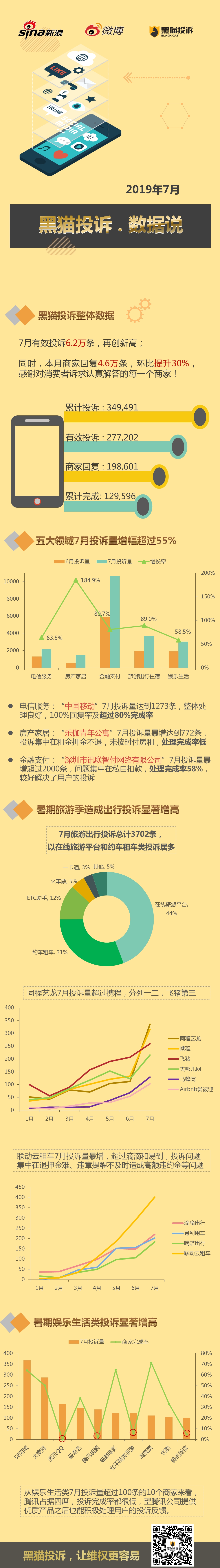 7月黑猫投诉数据说:暑期旅游出行及娱乐生活类投诉增长明显