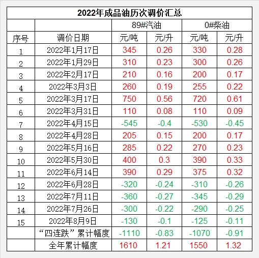 又到国内成品油调价窗口。国家发改委价格司发布的信息显示,根据近期国际市场油价变化情况,按照现行成品油价格形成机制,自2022年8月9日24时起,国内汽、柴油价格(标准品,下同)每吨分别降低130元和125元。