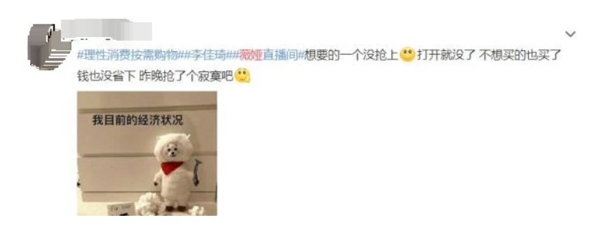 抢不到,这也是薇娅与李佳琦直播间最为常见情况,很多女生都表示自己辛苦熬夜等到了时间,结果却没有抢到,甚至还因为熬夜多出了三颗痘痘。