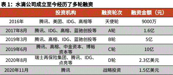 而从水滴公司成立伊始,腾讯就敏锐地捕捉到机遇,从2016年天使轮融资开始,水滴公司上市前的6轮融资腾讯全部都有所参与,最终在公司上市前获得了超2成的公司股份。
