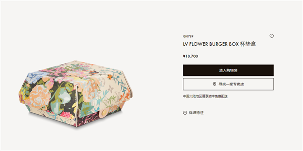 此前,LV官网还上架了一款LV FLOWER BURGER BOX杯垫盒,类似汉堡盒,售价高达18700元。