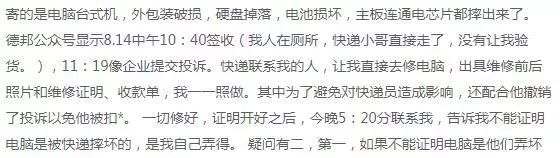 1.电脑邮寄过程中损坏 客服回应不能证明是快递员损坏的