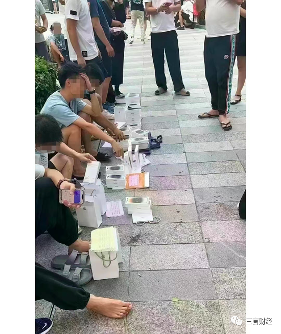 当时,三言亲眼看到有人拎着五、六部全新的iPhone交给等待收货的黄牛,哥儿几个脸上洋溢着收获的喜悦,说不定心理正盘算这这几天能赚多少钱。